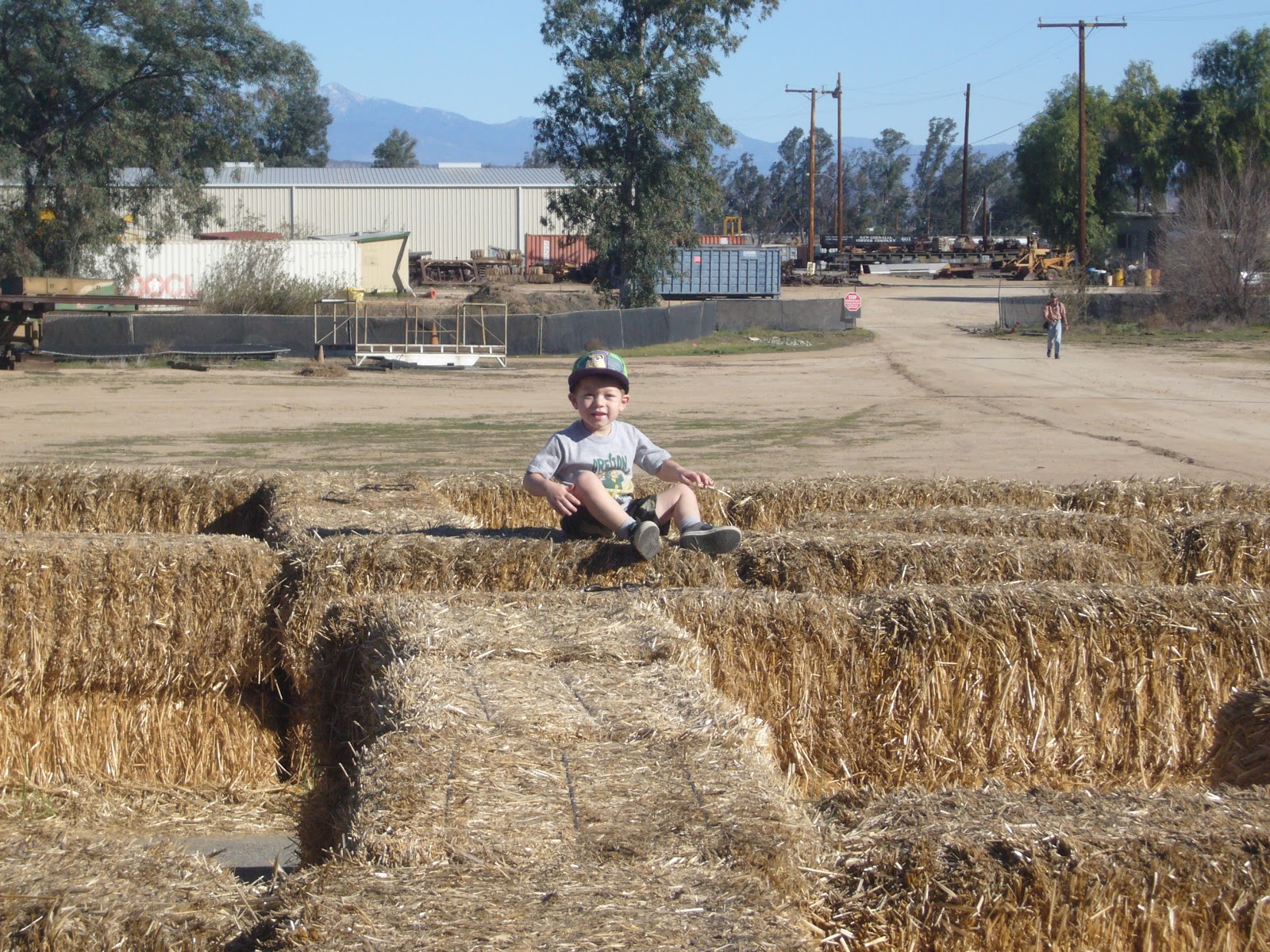 A hay bale maze. Zeke really liked this. This is where he saw another little boy with a train toy & told us "That boy is going to share his train with me." (like it or not implied!)